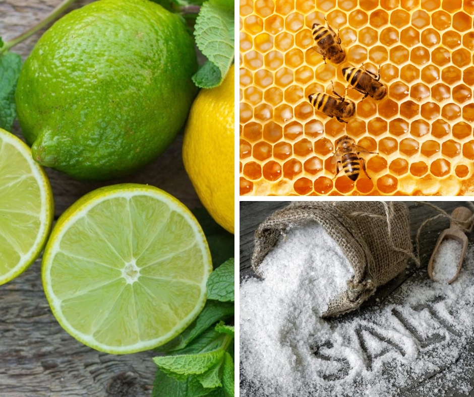 - Lấy 5 quả chanh vắt lấy nước, trộn đều với 3 thìa mật ong và 2 thìa muối trắng.