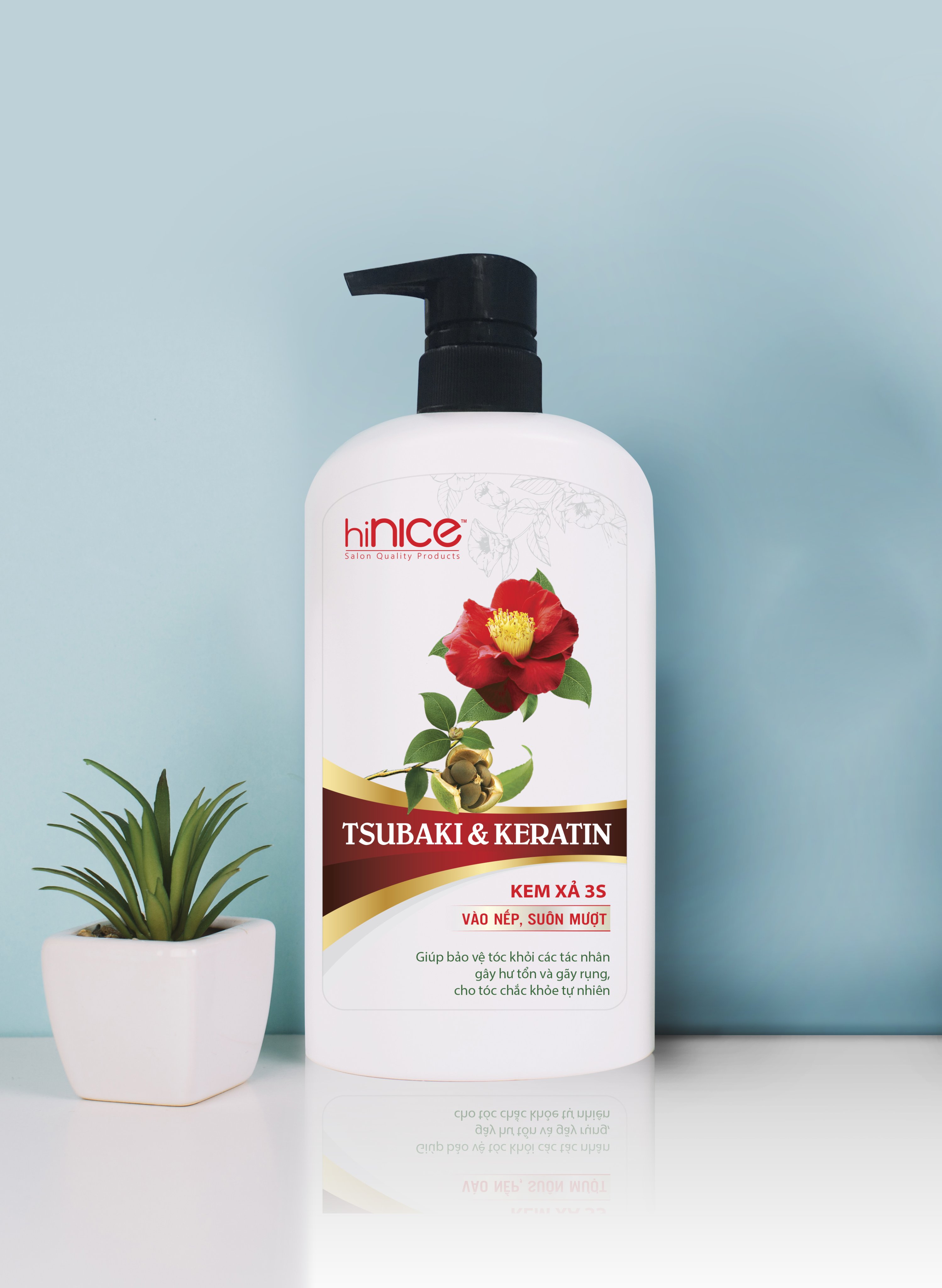 Kem xả HINICE với tinh chất Tsubaki và Keratin giúp bạn có một mái tóc suôn mượt óng ả mà không cần phải đến salon chuyên nghiệp.