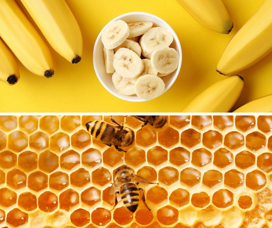 - Bóc vỏ và cho chuối vào máy xay hoặc một cái tô cùng với mật ong.