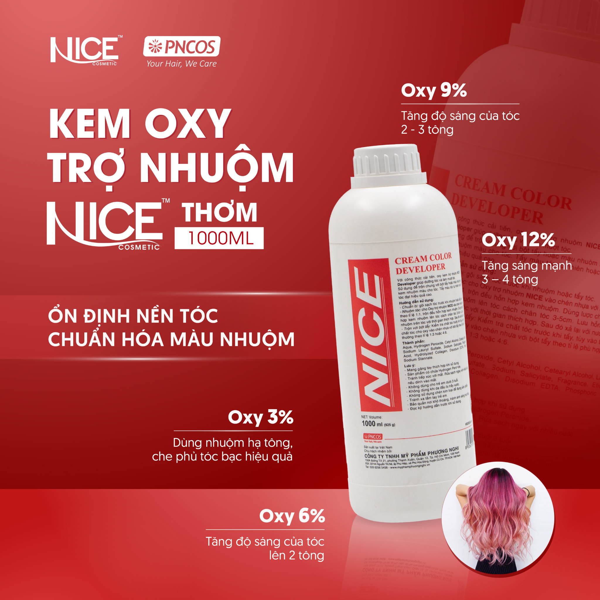 👉 Nếu các Salon đang tìm kiếm một dòng oxy nhuộm tóc giá bình dân nhưng chất lượng ổn định, an toàn cho tóc và da đầu, thì sản phẩm Oxy thơm NICE 1000ml sẽ là lựa chọn đáng cân nhắc