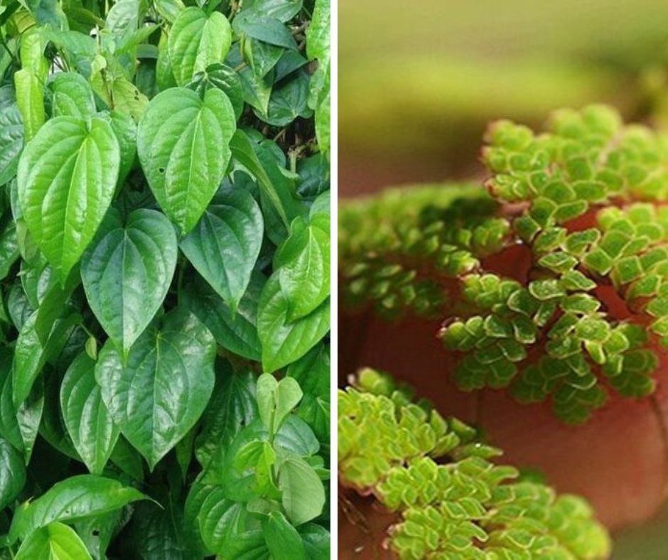 Nguyên liệu: 10 lá trầu không, 10 lá bèo hoa dâu.