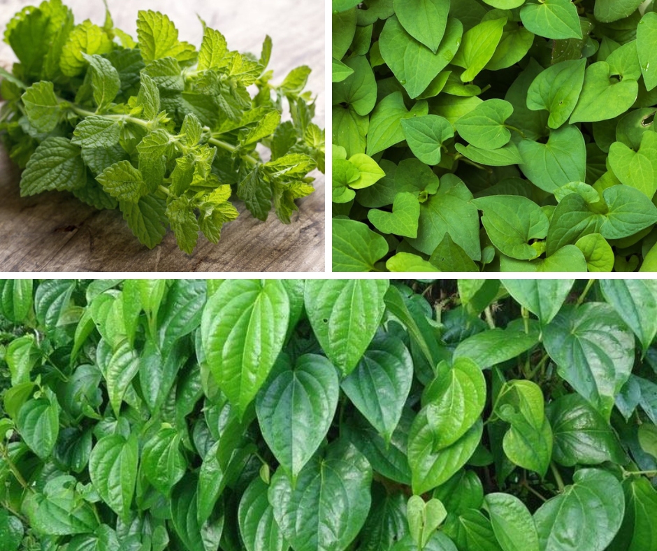 Cách 3: lá trầu không, bạc hà, diếp cá.