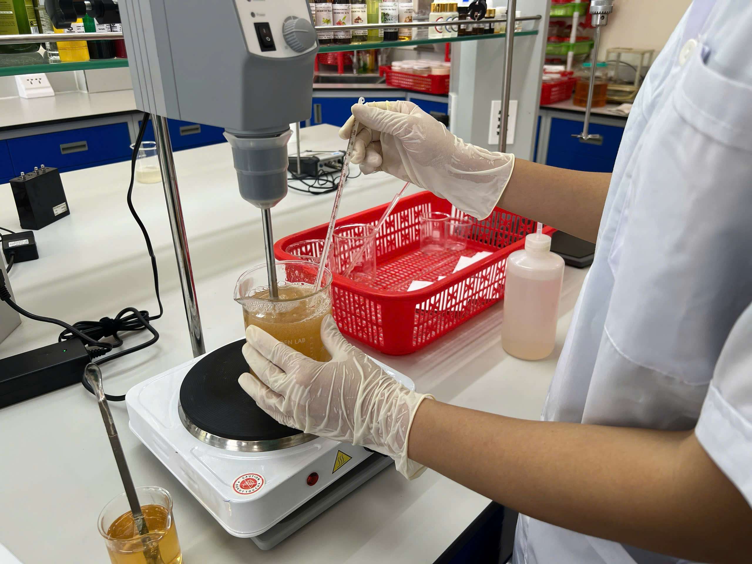 - Nghiên cứu và phát triển công thức : dựa trên yêu cầu đã tiếp nhận từ khách hàng, các chuyên gia kĩ sư sẽ tiến hành nghiên cứu và phát triển công thức đáp ứng đủ các yêu cầu, mong muốn của khách hàng đối với sản phẩm đảm bảo tính hiệu quả và an toàn.