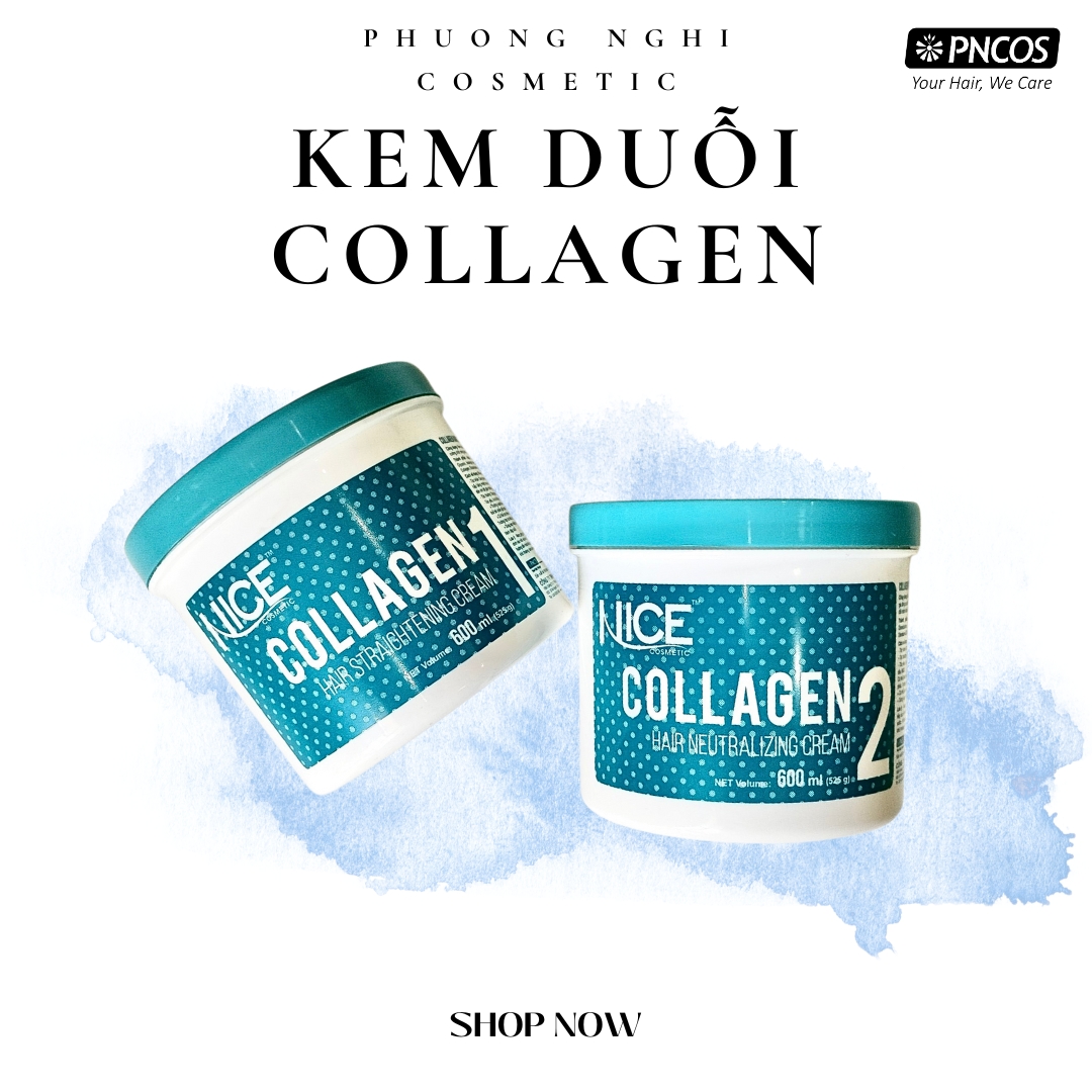 Kem duỗi tóc Collagen Nice giúp duỗi tóc thẳng và bóng mượt tự nhiên, hợp thời trang. Sản phẩm dễ sử dụng, thích hợp với tóc khỏe, tóc trung bình. Kem duỗi có chứa dưỡng chất Collagen giúp bảo vệ sợi tóc, hạn chế hư tổn trong quá trình duỗi, giúp tóc mượt mà, óng ả. Hương thơm dễ chịu, không lưu lại mùi trên tóc sau khi duỗi.
