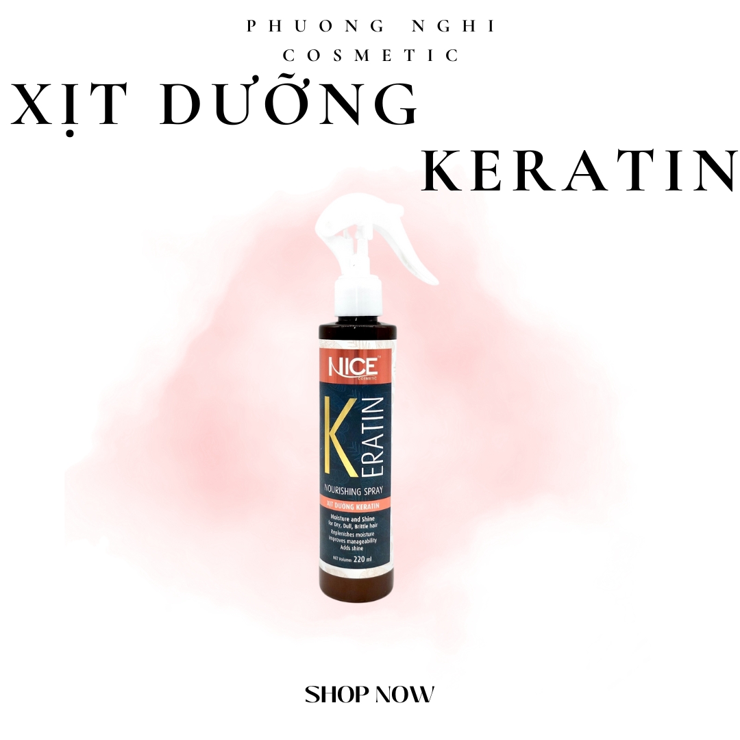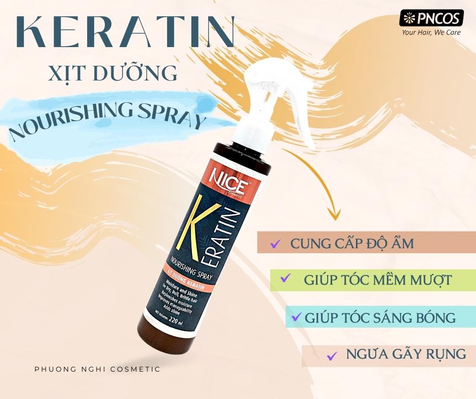 Tinh chất Keratin dồi dào từ Xịt Dưỡng Keratin Nourishing spray giúp bảo vệ tóc mỗi ngày, không chứa chất bảo quản pasraben, an toàn tuyệt đối cho da. Keratin có tác dụng phục hồi làm cho mái tóc của bạn tỏa sáng và nuôi dưỡng tóc chắc khỏe. Sản phẩm còn có tác dụng chữa trị tóc bị khô và phục hồi sức sống cho mái tóc, làm tóc bóng mượt.